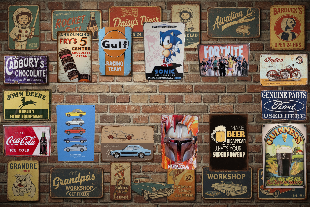 Each A4 sign is crafted from high-grade, weather-resistant metal with vibrant, UV-stable inks. Featuring smooth rounded corners and pre-drilled holes, our signs are built to look great in your garage, bar, or home for years to come.